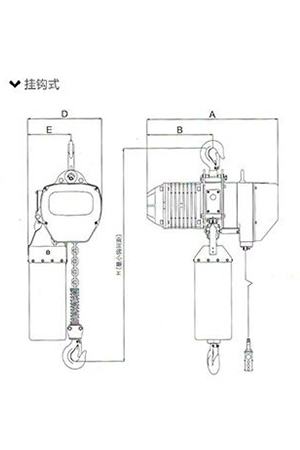 | 掛鉤式環(huán)鏈電動(dòng)葫蘆(0.25T-5T) 尺寸參考: | |||||