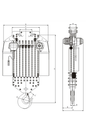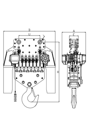 | 掛板式環(huán)鏈電動葫蘆(7.5T-50T) 尺寸參考: | ||||||||